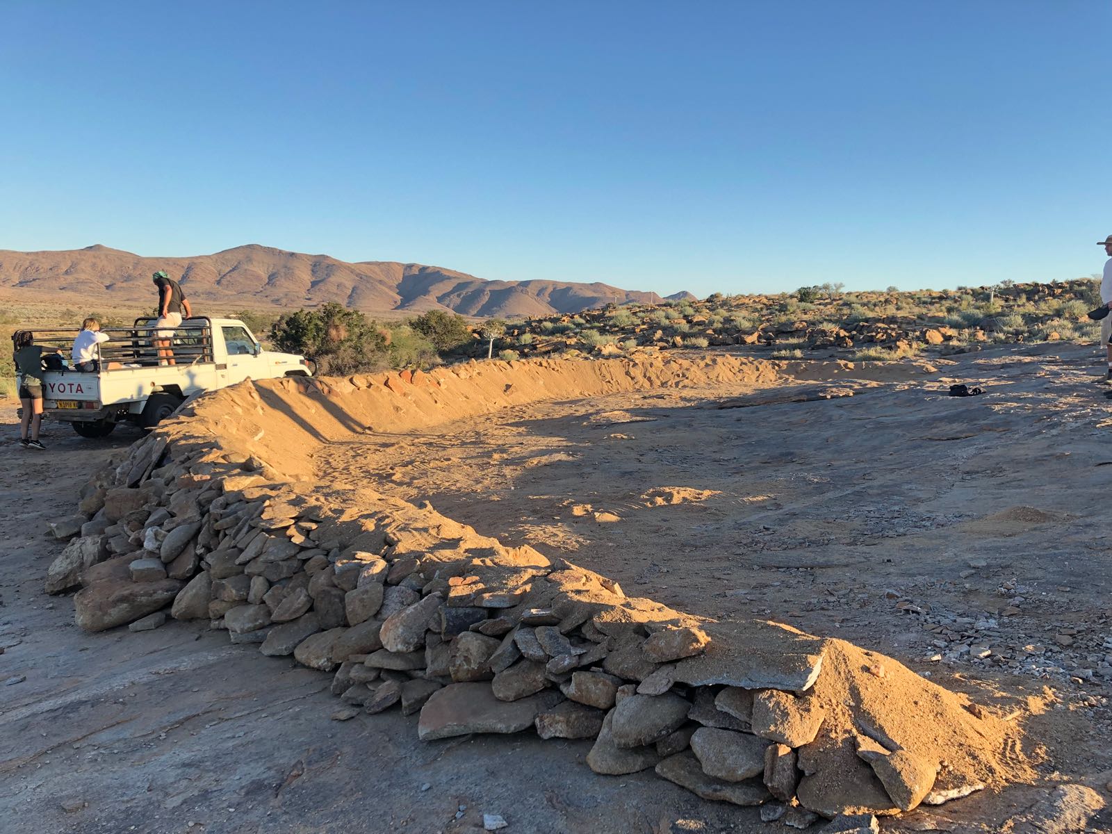 Day 9 started off with a flat tyre but with Red being pretty quick at solving this we got the day going quickly with the beginning of our natural dam construction. After a long day of shovelling A LOT of sand - confronted by yet another flat tyre on the way back - we were all extremely excited to be getting back to camp and into bed before at least 8pm. Crazy.